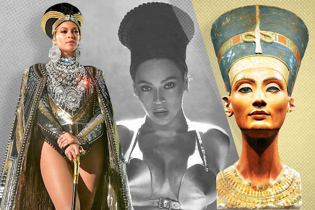 The exhibition shows a number of black American stars as popular historical Egyptian figures. This includes, Beyoncé and Rihanna as Nefertiti, American rapper Nas as Tutankhamun, and Eddie Murphy as Ramesses.